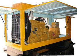 金阳柴油发电机组/移动柴油发电机组设计独具创新,机动性高、重心低、制动安全、制造精良、外形美观。 金阳拖车车架采用槽梁焊接成框架结构,节点选择合理、强度高、刚性好;同时装有钢板弹簧悬架结构;拖车采用高度可调节插销式牵引架,适用于各种高度牵引车;采用圆形钢管焊接直通式车轴,结构紧凑,安全可靠;车架四角设有机械式支撑装置,配备惯性行车制动、驻车制动和脱离应急制动,确保机组在各种状况下的安全;车架前端设有支撑轮,具备承受机组垂直载荷的功能的同时还具备导向功能;整车配备转向和刹车指示灯,同时装有尾灯标准插头